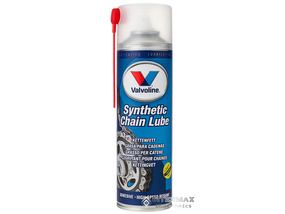 Valvoline Synthetic Chain Lube to wysokiej jakości, syntetyczny preparat do smarowania łańcuchów motocyklowych typu O-ring, X-ring oraz Z-ring.
